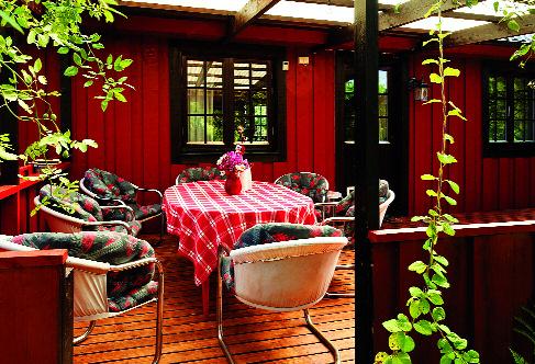 Террасу и настил можно выполнить из натурального или искусственного камня, кирпича, керамической плитки, металла. На выбор покрытия прежде всего влияет конструкция дома. Элегантному коттеджу в стиле “модерн” больше подойдет плитка. С домиком в стиле “кантри” органичнее будет выглядеть терраса, вымощенная булыжником или клинкерным кирпичом неброских оттенков. Но лучшим материалом для террасы считается дерево —