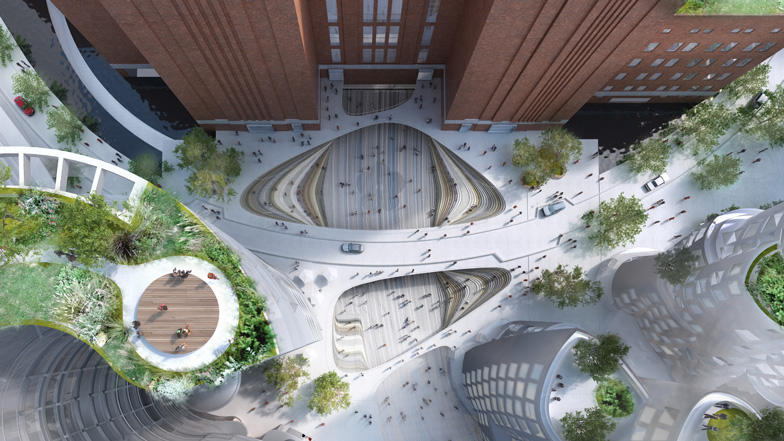 Новые изображения предложений показывают дизайн городской площади как "двухуровневый городской каньон", с интегрированными мостами и лестницами, "вдохновленными пейзажем и геологией Малайзии" – намек на малайзийскую компанию, ответственную за развитие.